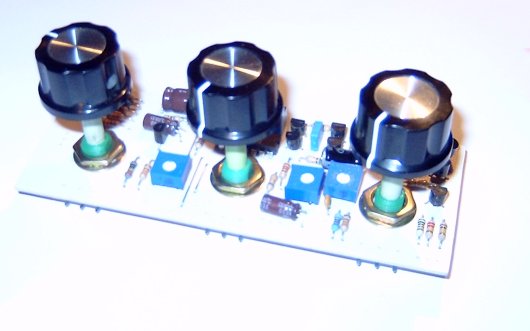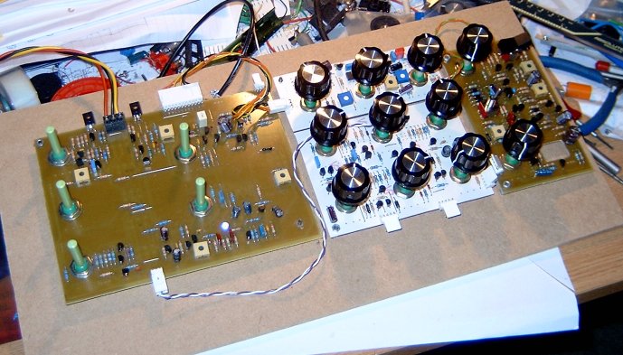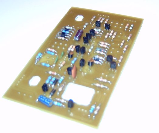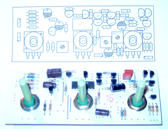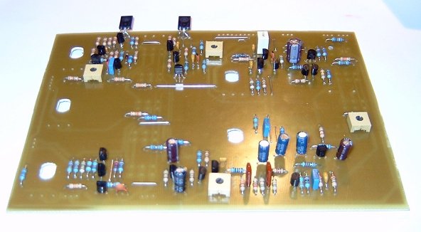 Backend PCB contains 440Hz reference generator, voltage controlled amp and headphone amp - hole is for headphone socket.