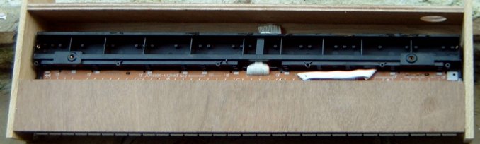 Cabinet fitted with keyboard, donor was a Casio keyboard, once mountings are finished the first five keys need to be removed
